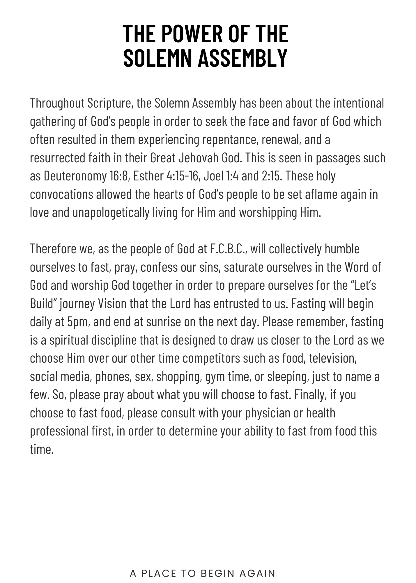 Friendship Community Bible Church is to be “A Place to Begin Again”. The vision is rooted out of the story in John 8 where Jesus told the woman caught in the very act of adultery to go her way and sin no more. In other words, Jesus allowed her to begin again!